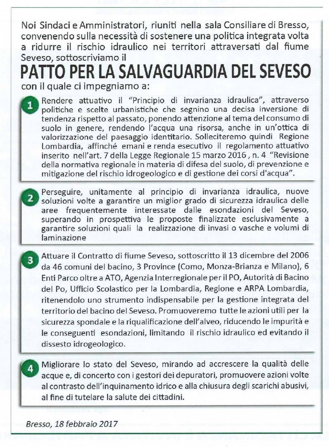 FIRMATO IL PATTO PER LA SALVAGUARDIA DEL SEVESO.